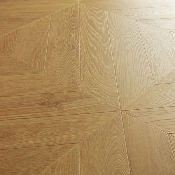 Quick-Step Impressive Pattern – Mã màu IPA4161 – nổi bật với tông sồi tự nhiên ấm áp với tông beige nhẹ nhàng, tạo cảm giác gần gũi, tinh tế cho không gian nội thất.. Bề mặt kết hợp các đường vát 4 cạnh (genuine bevel) và hoạ tiết Parquet tinh tế, làm tăng độ sâu và sự sang trọng cho không gian nội thất.